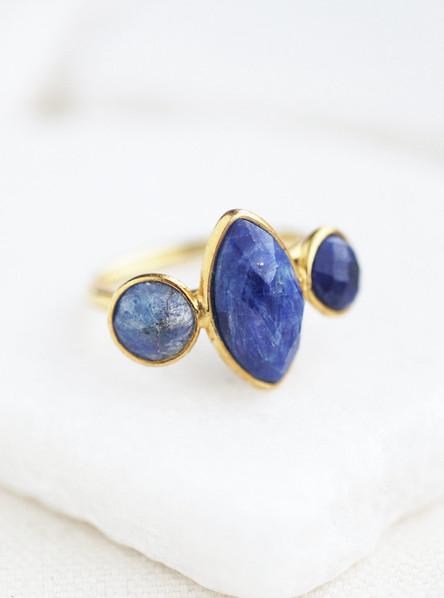 Crown Shape Natural Gemstone Ring. Sterling Silver (925)